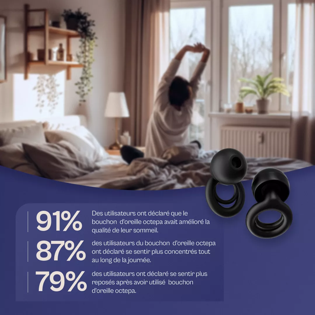 Ronflements de votre partenaire, bruits de la ville ou nuits perturbées par bébé qui pleure, Octepa crée une bulle de silence qui change tout.