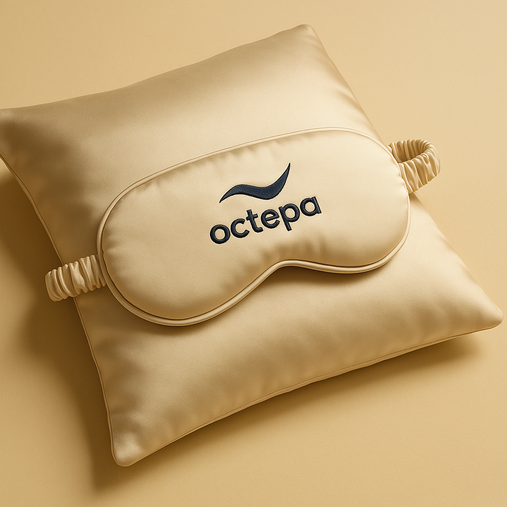Grâce à sa soie 22 mommes ultra douce, le masque Octepa bloque 100 % de la lumière tout en respectant la peau.